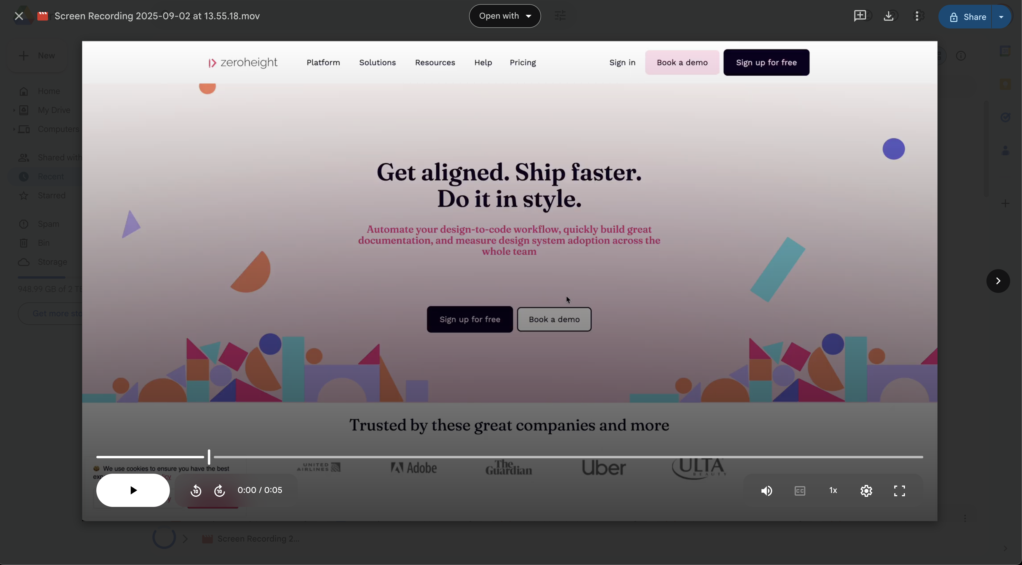 1) Open your video in Google Drive to bring up the preview window.