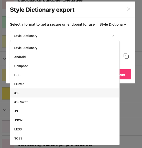 Exporting to code via a URL with Style Dictionary
