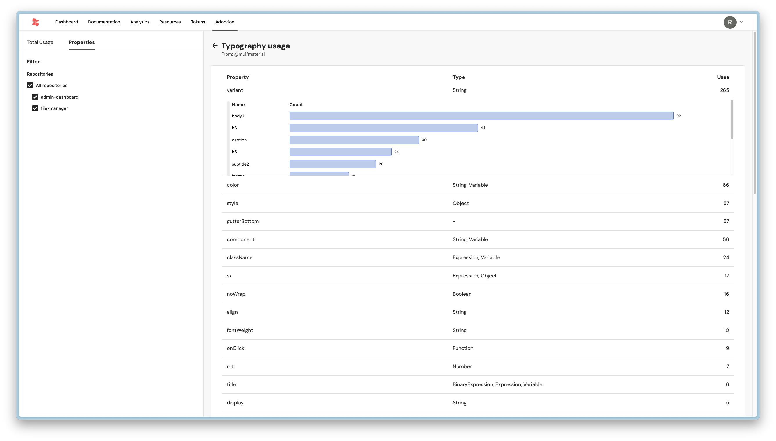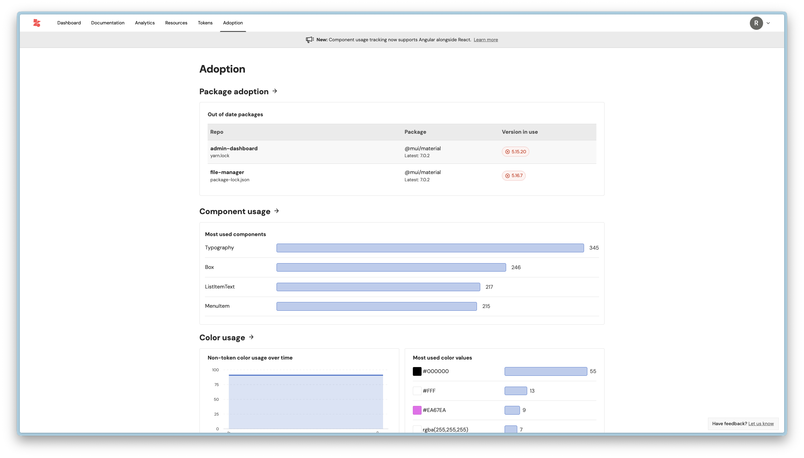 Head over to the Adoption tab in your account and you should see a chart showing your four most used components