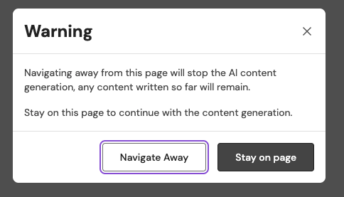If you attempt to change tab while the content is being generated you'll see the following warning:
