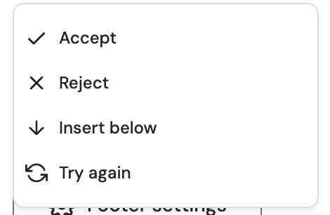 Whichever option you select, new text will be generated that preserves the original intent and adheres to tone of voice instructions (if they exist). You can also jump to configuring these instructions via the Set tone of voice option in the menu. See below for more details about each options: